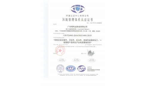 环境管理ISO14001-认证证书